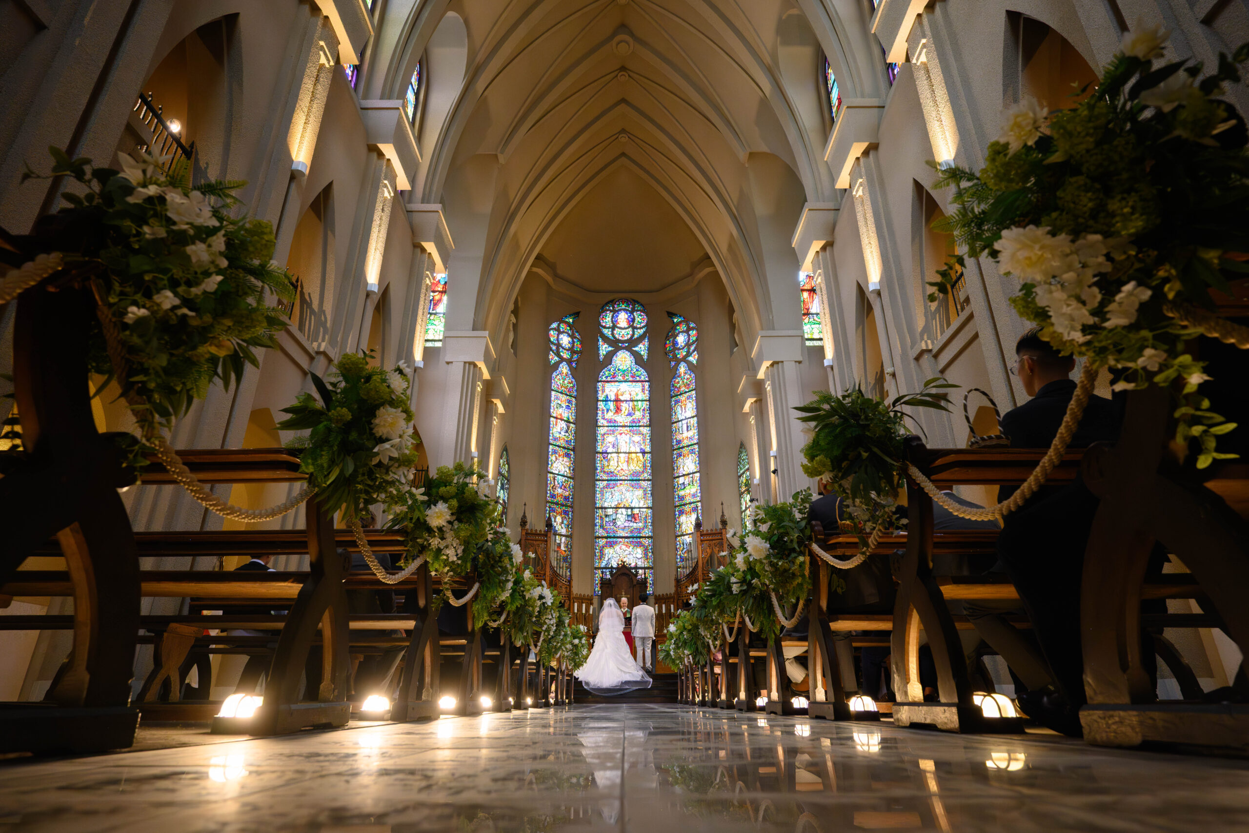☆感動のステンドガラスから降り注ぐ荘厳で神聖な光の中、セントマリアンヌ大聖堂のバージンロードを歩いて実際の雰囲気を感じてみてください。正統派の大聖堂は一見の価値ありです。