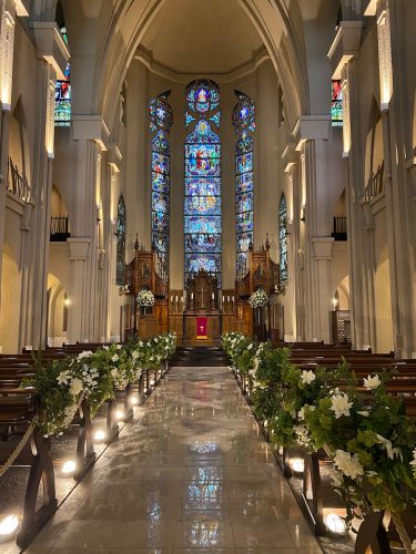 扉を開けた瞬間、圧倒的なスケール・やわらかな光がステンドグラスを通り抜け